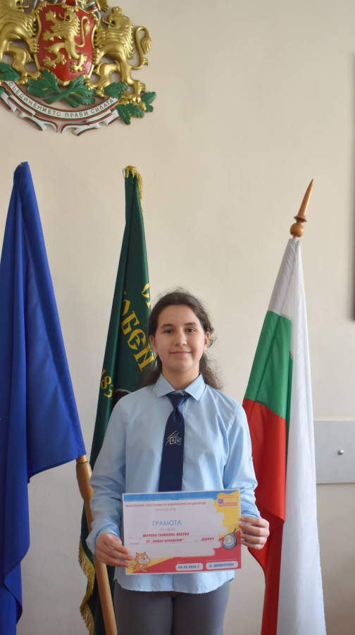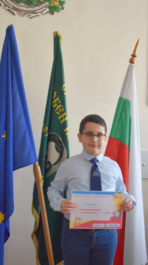 На областния кръг отлично представяне показаха учениците Марина Янкова и Стефан Стоянов от III „В“ клас. Те са активни участници в училищния клуб по интереси „Блоково програмиране със Scratch“, където развиват своите умения в създаването на компютърни проекти и модели.
