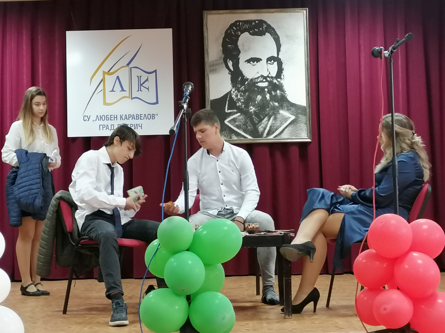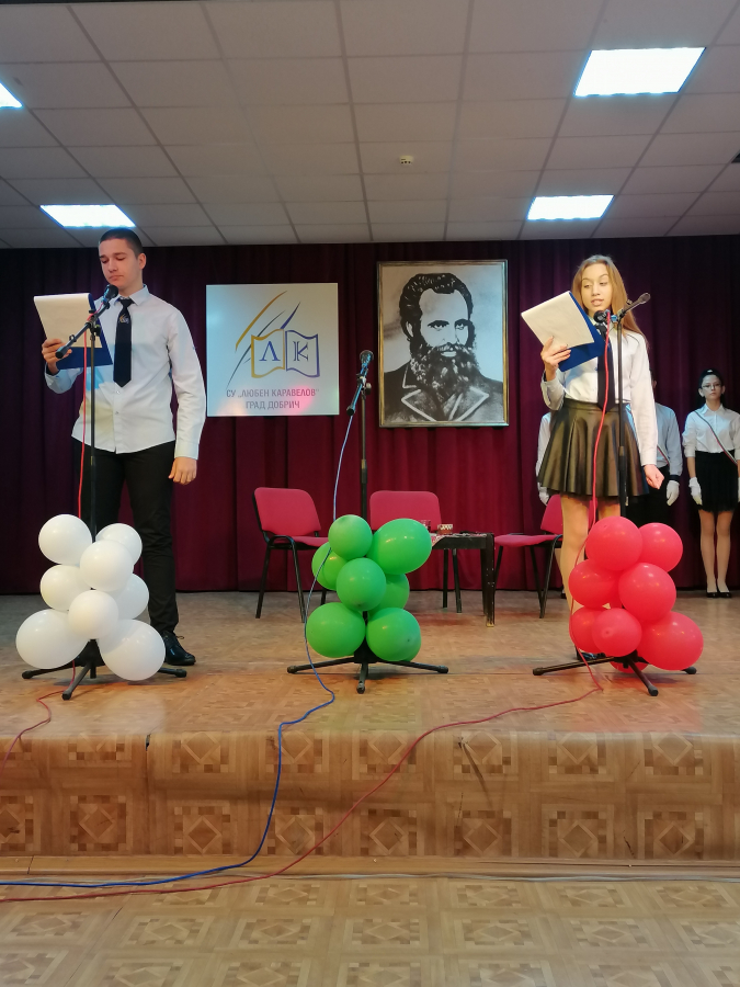 С вълнуващо тържество и флашмоб Средно училище „Любен Каравелов“ отбеляза своя патронен празник. Като пламенни последователи на Каравелов, учениците рецитираха и изпяха словата на великия възрожденец. Гимназистите представиха съвременен прочит надраматизацията „Маминото детенце“ и спечелиха сърцата на публиката. Следвайки завета на своя патрон „Без образование ние никога няма да достигнем до никакво добро.“, каравеловци показаха знанията си за живота, революционната дейност и творчеството му в образователната игра по граждански науки като приложиха и технологиите. Днешният ден е повод възпитаниците на училището да се гордеят със своите постижения, с иновациите, които прилагат, с откритията и победите си. Госпожа Светла Иванова, директор на училището, отправи поздрав към учениците и учителите, които горят с пламъка на възрожденския дух на Каравелов и го следват като пример и учител.