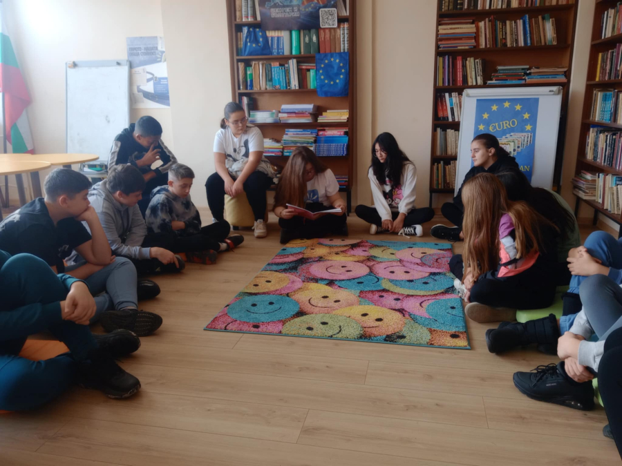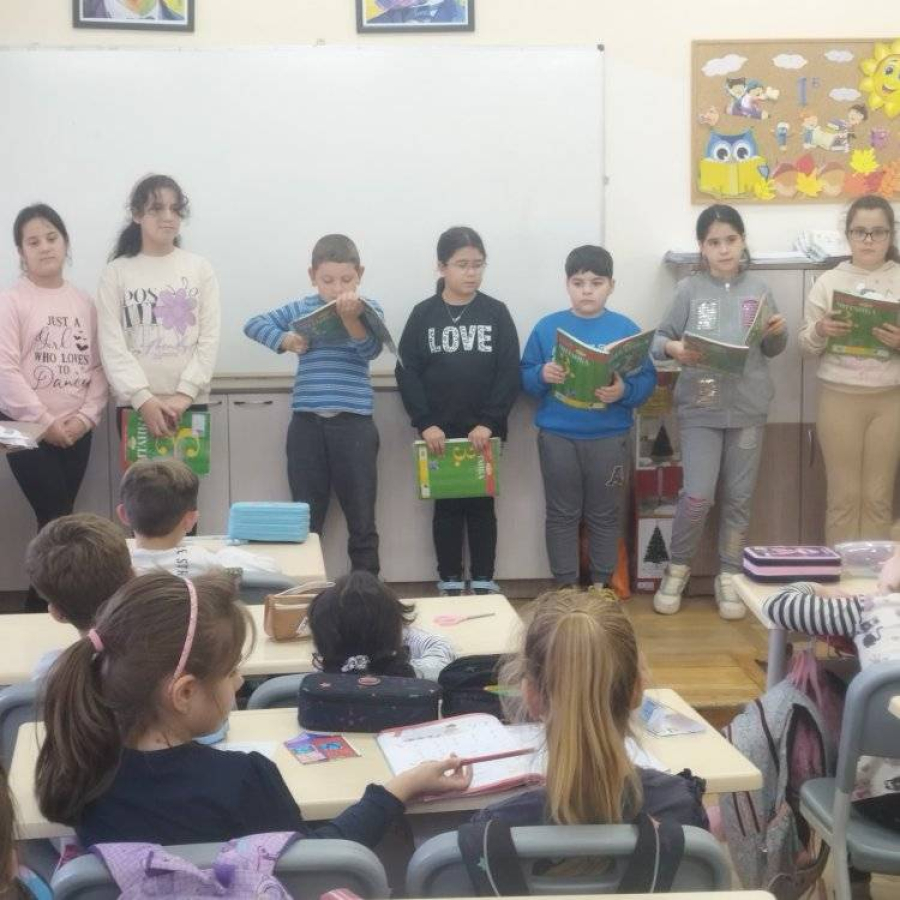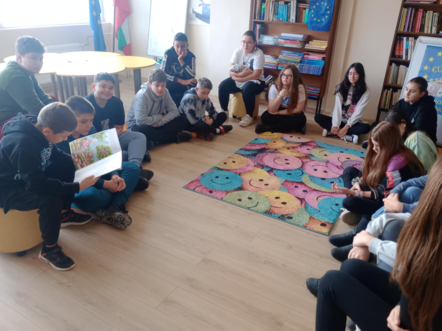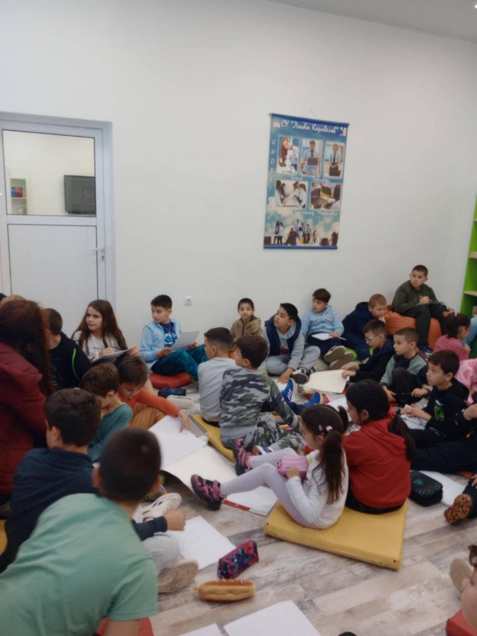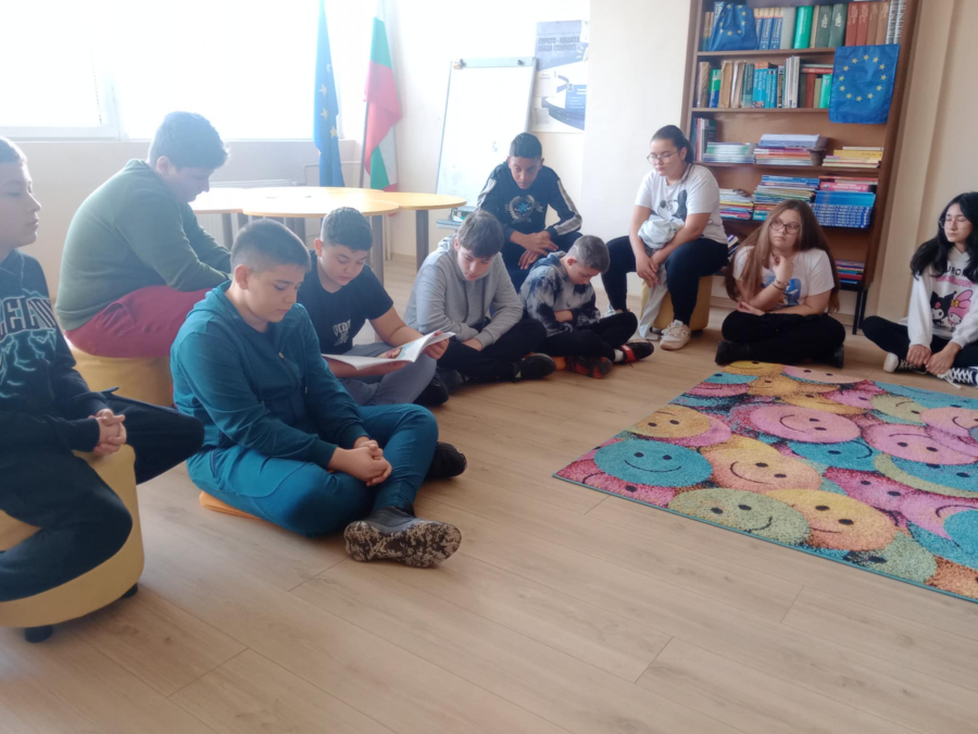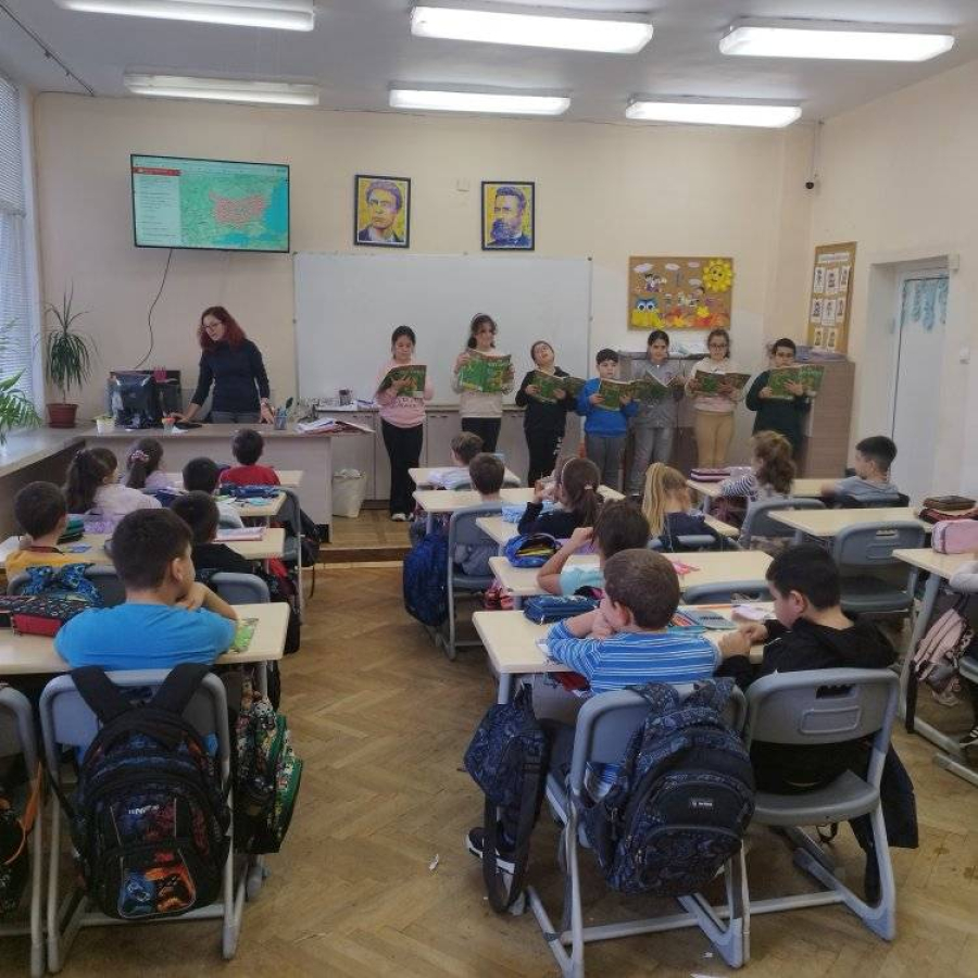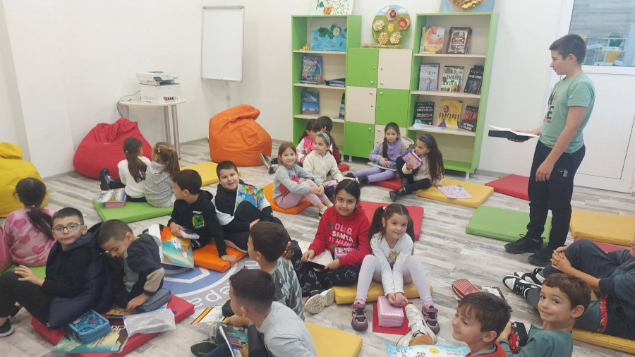 Учениците от 3.в клас посетиха своите по-малки приятели от 1.б клас, за да споделят радостта от четенето. Третокласниците прочетоха забавни и увлекателни истории, след което задаваха въпроси, за да проверят вниманието и любопитството на първокласниците.