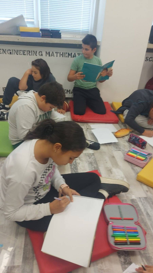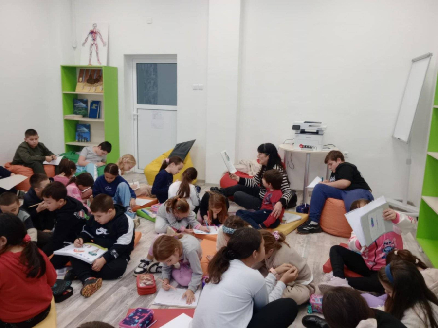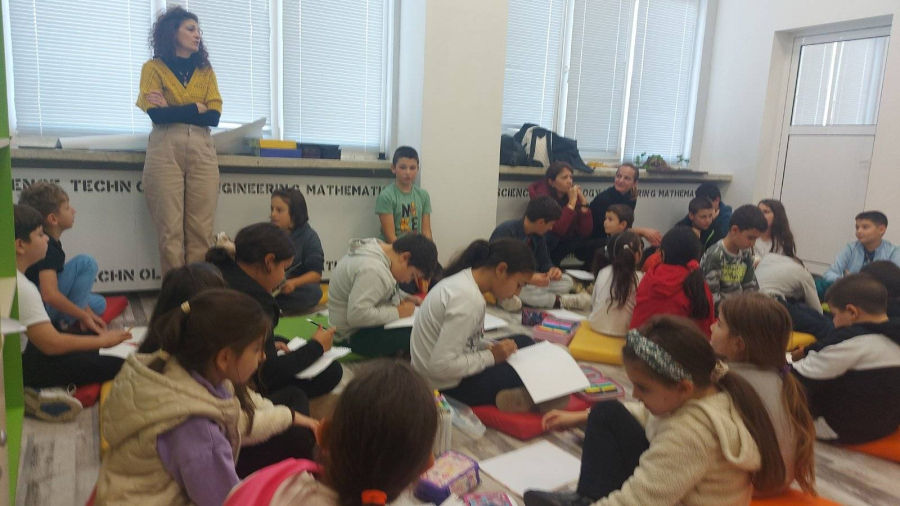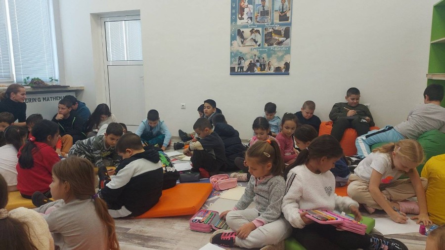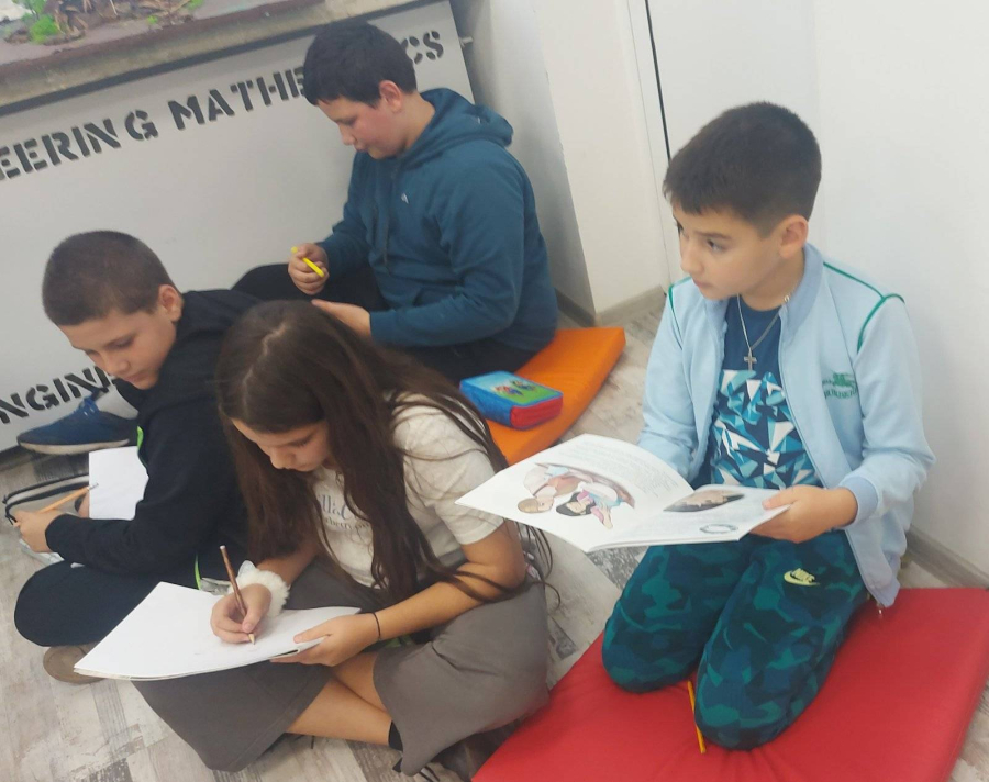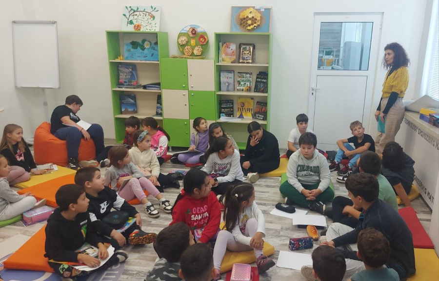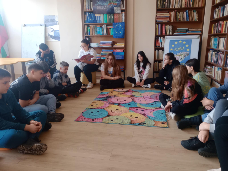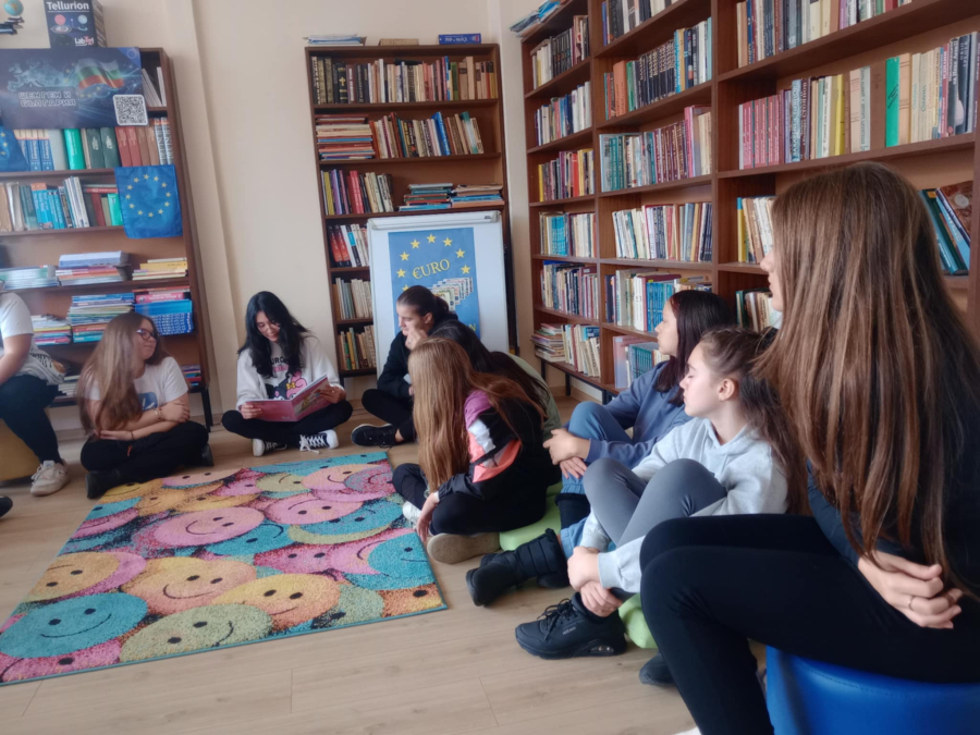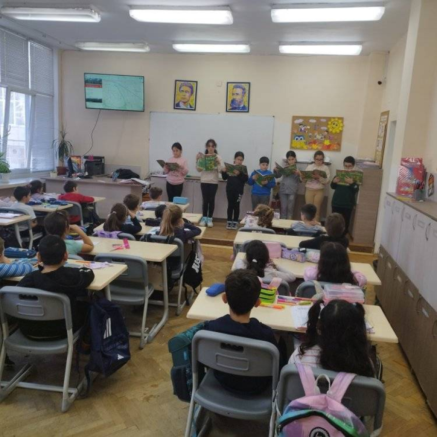 Учениците от 3.в клас посетиха своите по-малки приятели от 1.б клас, за да споделят радостта от четенето. Третокласниците прочетоха забавни и увлекателни истории, след което задаваха въпроси, за да проверят вниманието и любопитството на първокласниците.