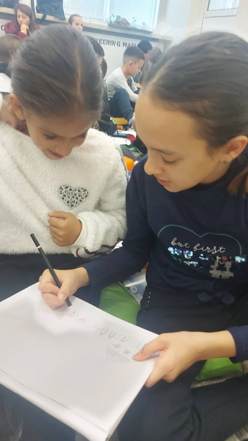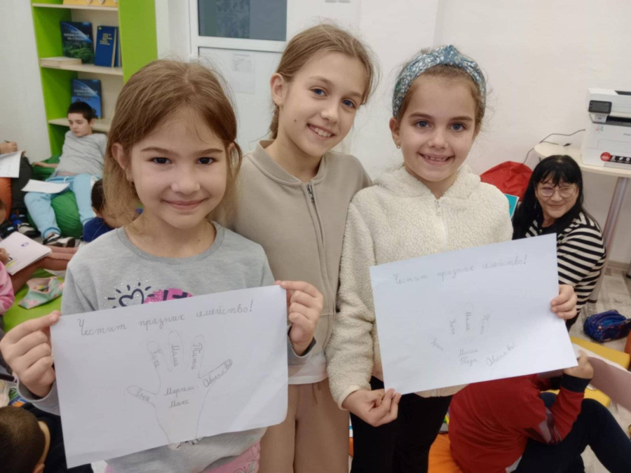 В рамките на празничния ден първокласници и петокласници също проведоха съвместна дейност. Учениците от пети клас прочетоха на най-малките разказа „Пръстенът на рода“ от Петя Петрова — история, която ги пренесе в света на българската литература и семейните традиции.