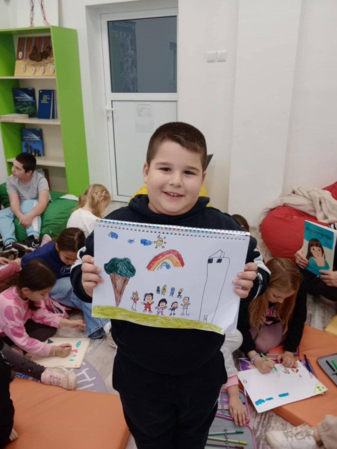 След четенето децата рисуваха по темата „Семейството“, като в своите творби пресъздадоха представите си за обич, сплотеност и дом. Срещата завърши с разговор за значението на семейството и уважението между поколенията — важни ценности, които обединяват всички.