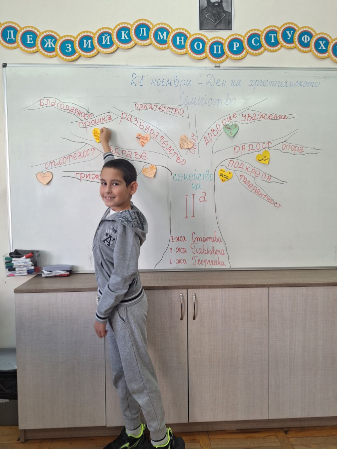 Учениците от II „А“ клас отбелязаха Деня на християнското семейство – един специален ден, който ни напомня, че семейството е ценност, която свързва всички хора, независимо от тяхната религиозна принадлежност. Любовта, уважението и разбирателството са общочовешки добродетели и именно те изграждат хармонията у дома и в нашия клас.