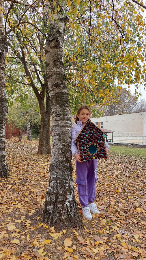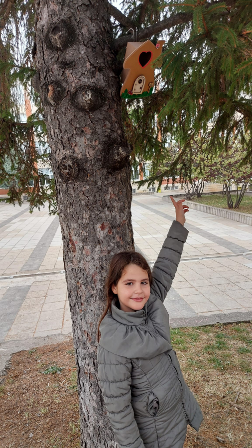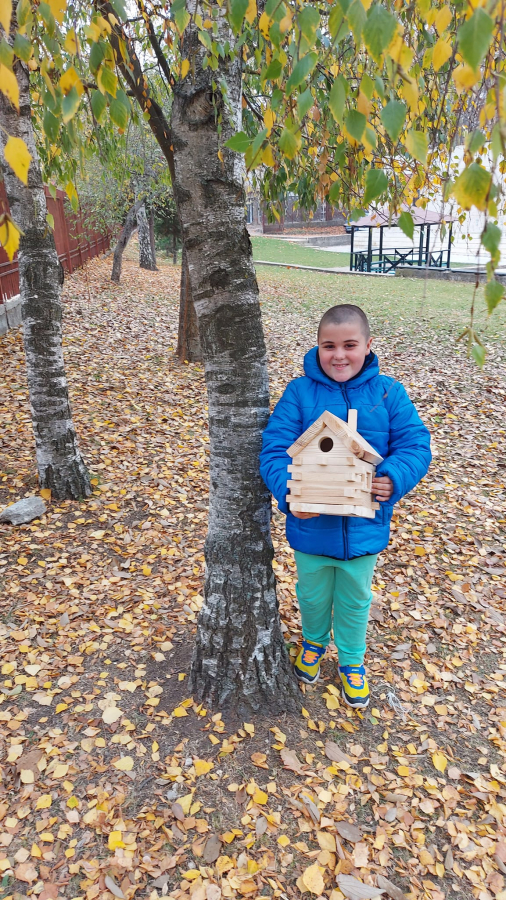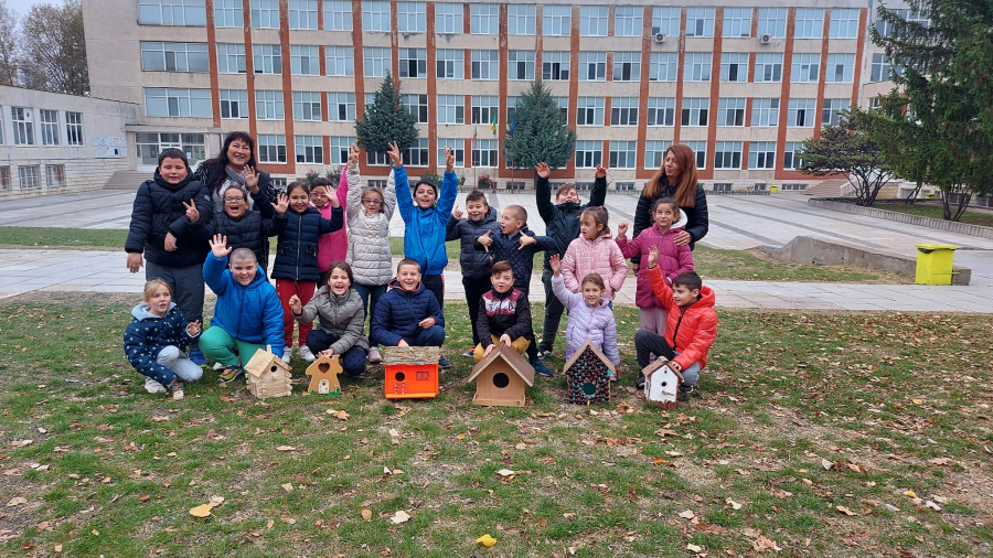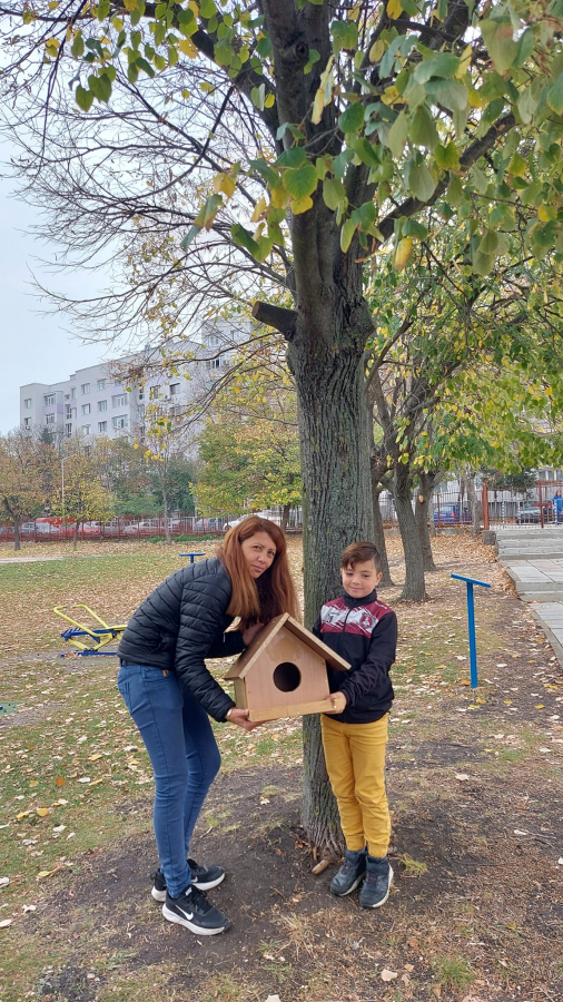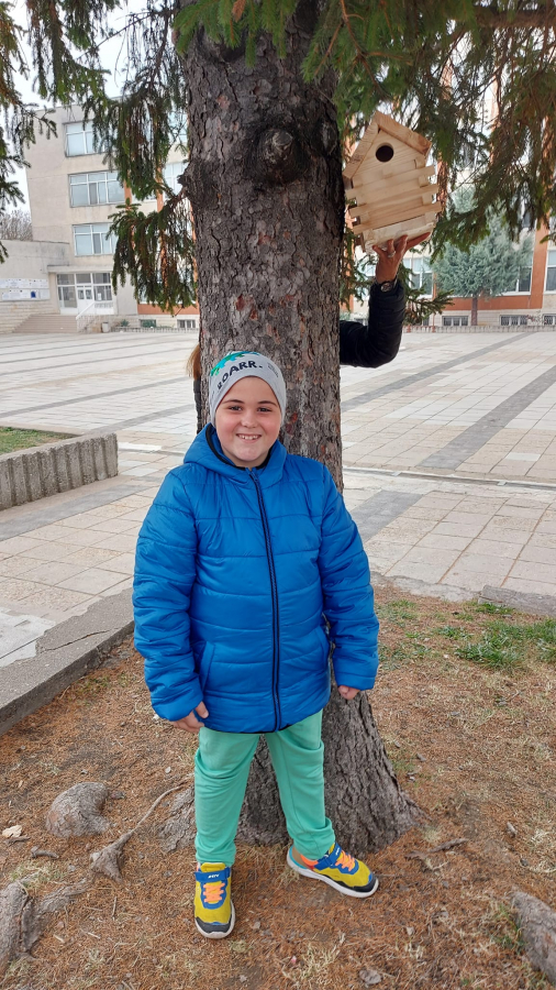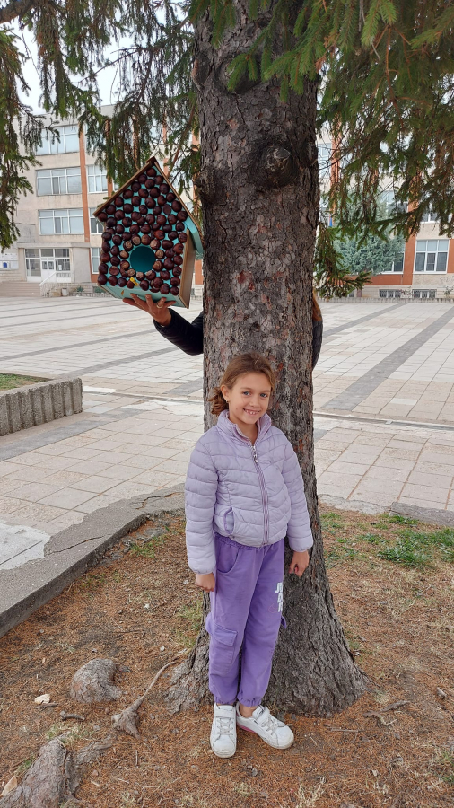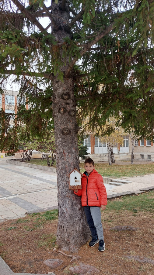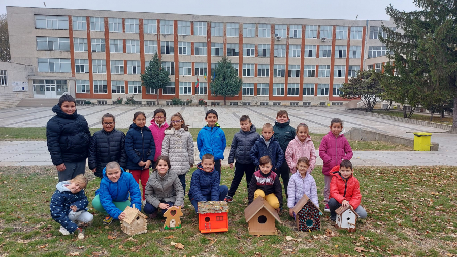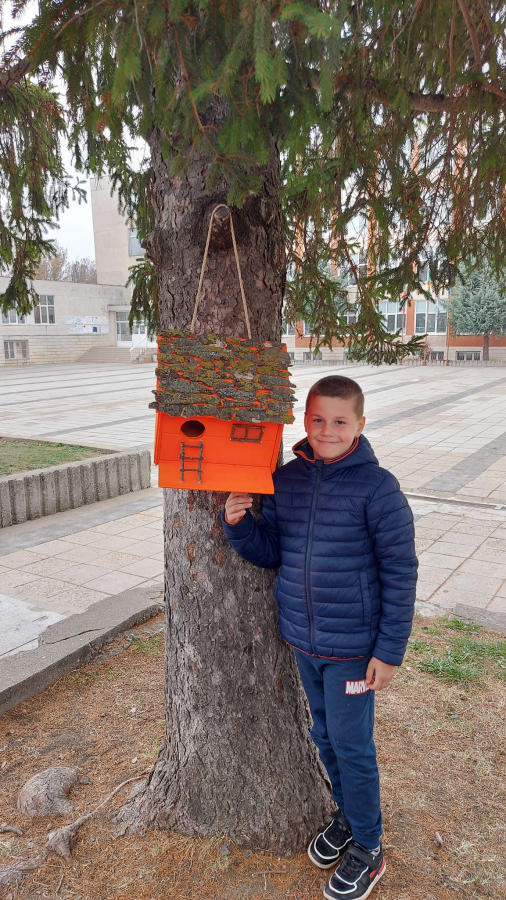Ние, учениците от II а клас от СУ" Любен Каравелов" направихме къщички за птичките в двора на нашето училище и редовно ще слагаме в тях храна.