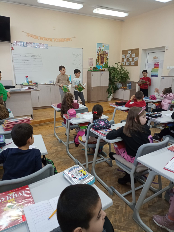 днес учениците от трети Б клас посетиха своите приятели от първи А клас и им прочетоха приказки и стихотворения. Разказаха им колко труден е бил пътят им докато започнат да четат толкова хубаво, но вече се справят много добре и се гордеят с това. А първокласниците пък им обещаха, че когато научат всички букви ще им върнат визитата и те ще им почетат.